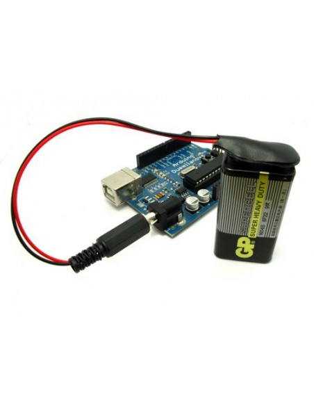 This is a simple adapter from 9v batteries to a barrel jack connector, very useful for Arduino and other mcu board with a barrel jack adapter.